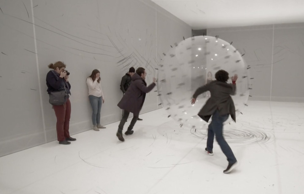 這間房當然不是一間「party room」,但對於踏進這間房的人來說,這是一次激發自己創造力的旅程。波蘭藝術家Karina Smigla-Bobinski 創造出這個充滿氦氣的大型球體,命名為ADA,上面裝滿了木炭刺來作為畫筆,當它被推動的時候,它便會戲劇性地在牆上,或者被撞倒的人身上,畫上瀟灑的圖案,然後「啵」地飄走。