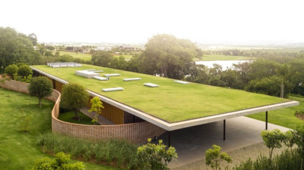 在巴西聖保羅的郊區,你會發現有一棟設計簡約的建築物,混凝土的屋頂上鋪著滿滿的草坪,長方形的屋頂恍惚就是周圍樹林的一個延伸,從高空俯瞰,會覺得屋子是森林的一部份。