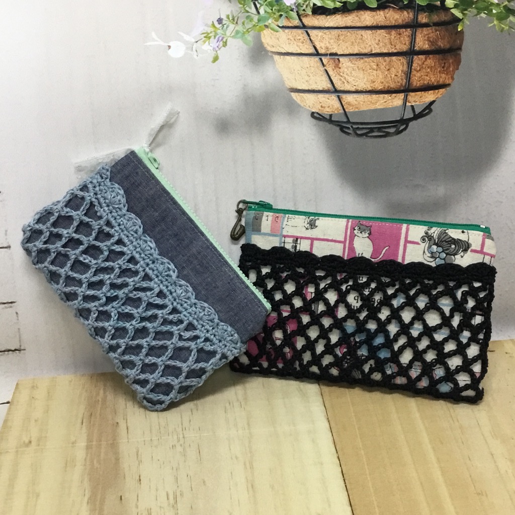 在一般布製小包外,增加菱格編織的設計,