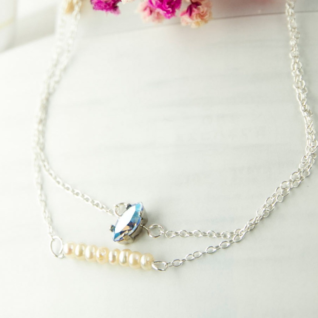 材質:日本のシルバーチェーンの輸入。淡水パール。オーストリア産スワロフスキークリスタル