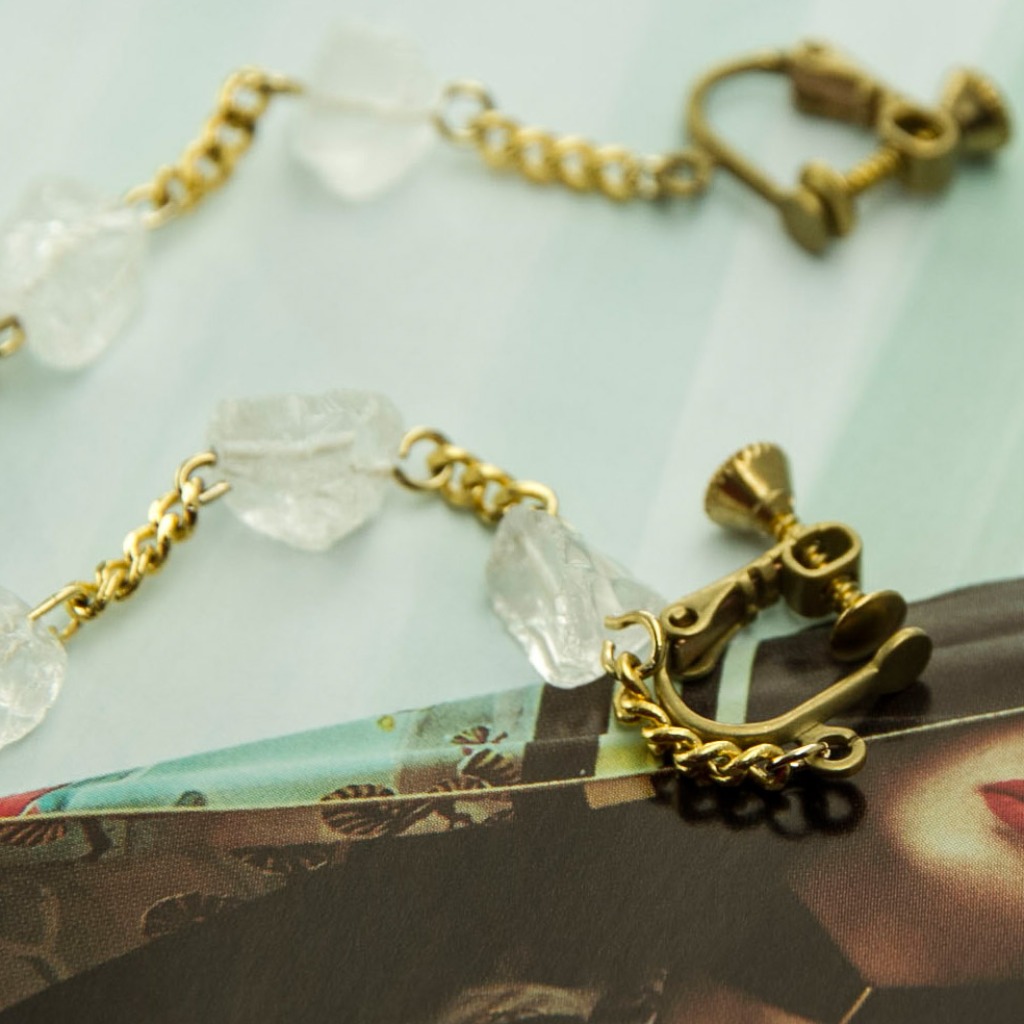 Material: White crystal Rock/ Japan, brass ear clip, brass craft / Korea