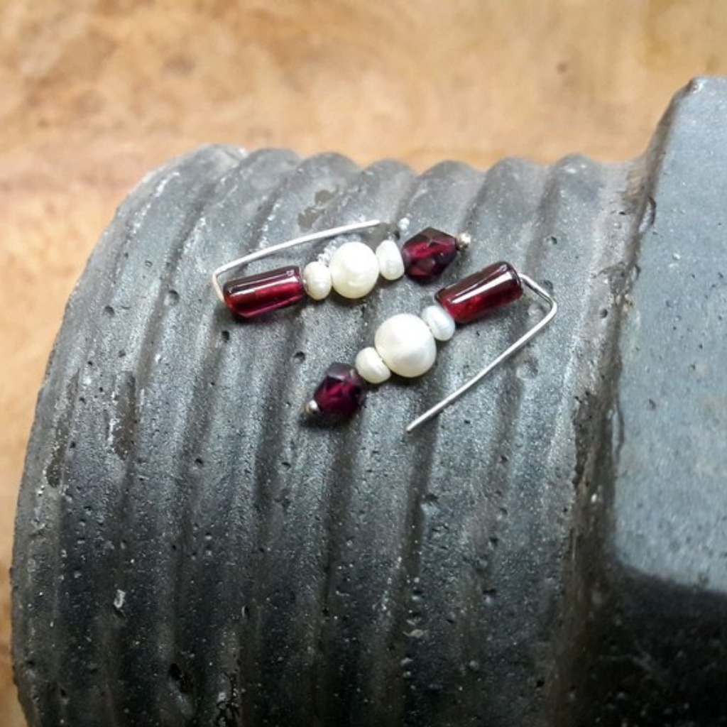 紅石榴石搭配純白珍珠,採用純銀耳針是抗過敏的最佳好朋友!