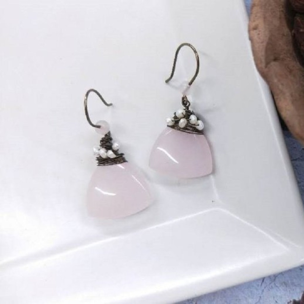 水滴狀粉晶運用細緻古青黃銅線編織其中!